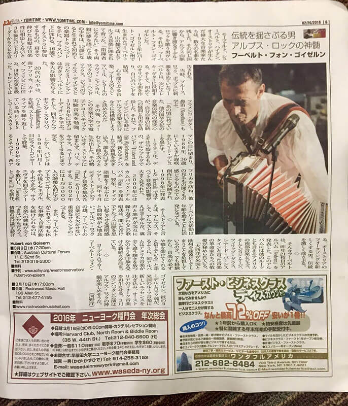Von Goisern hits the road once again, traversing the US on a brief tour that will take him to New York, DC, and Austin this spring.