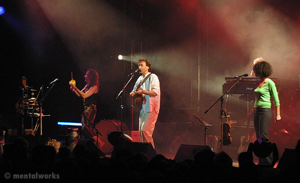 The band started there brilliantly with the current tour programme Grenzenlos 2002 and punished all those responsible in the field of lies who have called it a great mistake to present a new record live before its release (in September). The first part of the concert is almost completely made up of new pieces, which prove that Hubert von Goisern plays in a different musical league today from years ago with his cult Alpinkatzen.