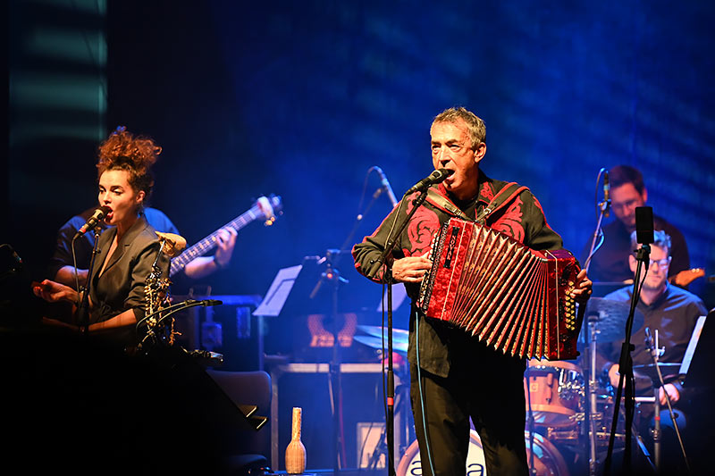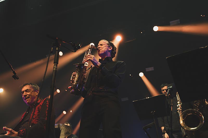 Hubert von Goisern was the cheerful master of ceremonies, but had the grace to keep stepping back to give sufficient room for the many talented players on the stage. He has opened another window with this collaboration, entered another soundscape in which he is audibly and visibly comfortable. The fact that he keeps having to rest his injured leg does nothing to detract from the empathetic dynamic of this evening.