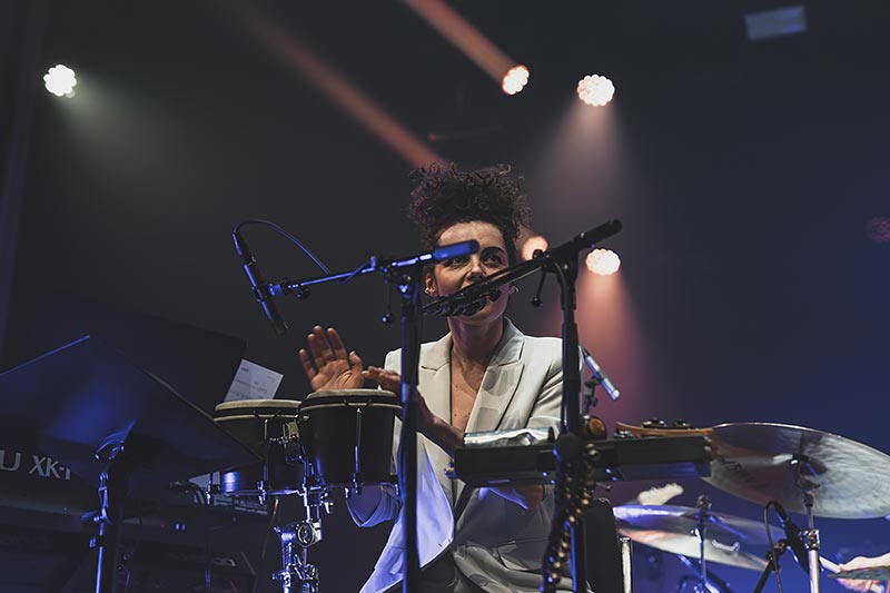 The trombone solo from stage grenade Robert Bachner sends a refreshing and strengthening chill down your spine, the magnificent singer and percussionist Maria de Val takes the listeners breath away at several points during the evening. She is no unknown in Munich, playing at the Kammerspiele and with Angela Aux.