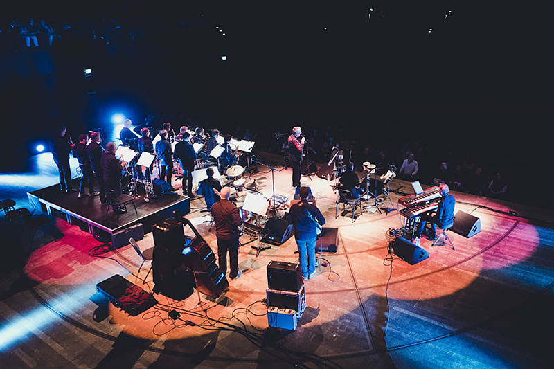So it was a worthy occasion to drop my decades-long resistance to bandleader Horst Hofer's request and to embark on the big band adventure for a few select dates. With my own songs, arranged for: brass, bellows and woodwind.