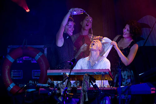 Not least because the band with whom Hubert von Goisern has been touring for three years worked excellently: David Lackner on keyboards was reminiscent in his playing of greats such as Keith Emerson or Manfred Mann. The three female singers Maria Moling (vocals and percussion), Elisabeth Schuen (vocals and violin) and Marlene Schuen (vocals and violin) offered much more than just acoustic and optical decoration. The whole group was then solidly held together by Severin Trogbacher (guitar), Alex Pohn (drums) and Helmut Schartlmüller (bass).