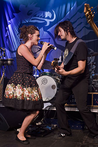 And even the first bars of the concert show the audience how things should be: there'll be rock this evening, crazy rock. Hammering beats and booming basses characterise nearly all the songs and give them the forcefulness that casts the audience under their spell. The fact that forcefulness doesn't mean monotony with von Goisern is shown with Auseinandertreiben: in a kind of speech song he tells of the failure of personal relationships while singer Elisabeth Schuen sings aria-like melancholy melodies in the background.