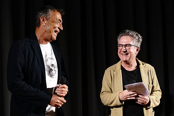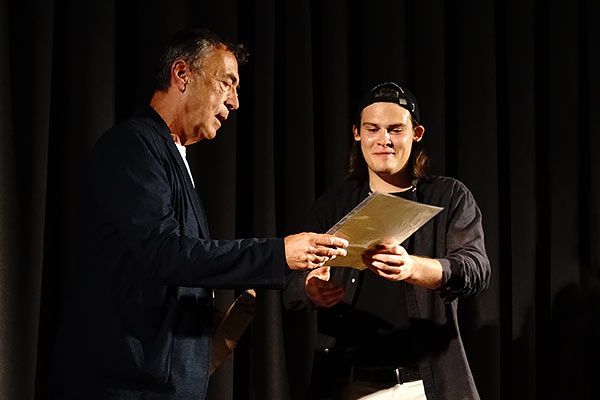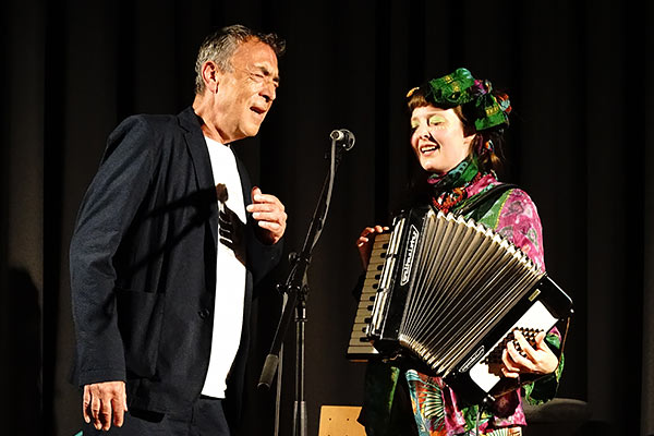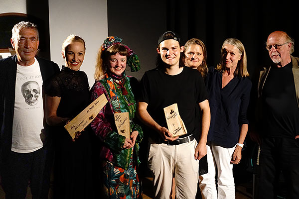 Vor der Übergabe der handgefertigten Trophäen und Urkunden sprach Moderator Helmut Jasbar mit Hubert von Goisern über seine Motivation für die Stiftung des Preises und bisherige Erfahrungen. "Ich will damit einen Beitrag zur Förderung von Talenten leisten," sagte Goisern, "und Künstler*innen unterstützen, die etwas zu sagen haben und für etwas brennen."