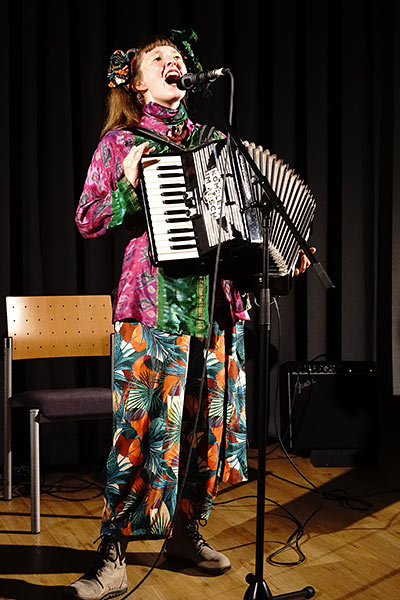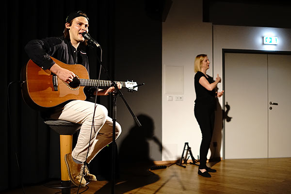 Elisabeth Schneider stellte die erste Preisträgerin, Ingrid Hofer, vor. Als Einblick in ihre Arbeit mit gehörlosen Kindern sang die Liedermacherin Kleiner Stern, ein Gute-Nacht-Lied aus ihrem zweiten Kinderliederalbum. Nicht nur Ingrids Auftritt, sondern die ganze Preisverleihung wurde von Gebärdensprachdolmetscherinnen Sabine Höller und Anna Huber begleitet, um für einen barrierefreien Abend zu sorgen.