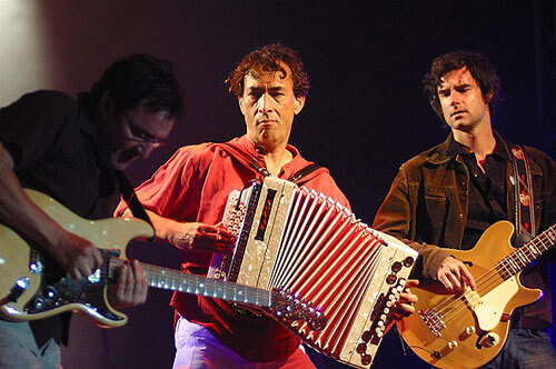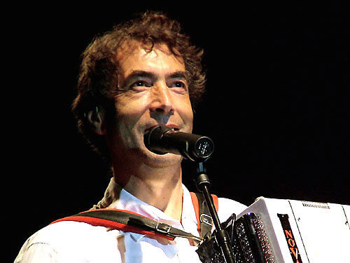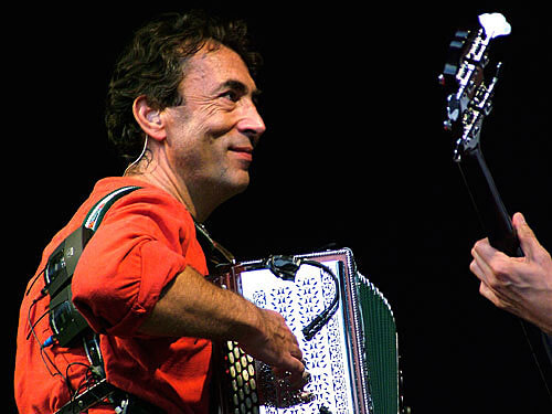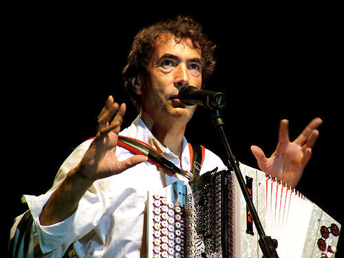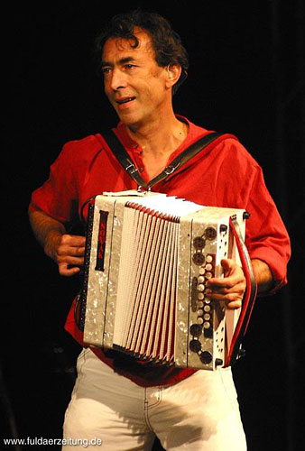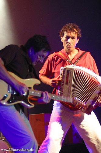 Rund 1100 Besucher waren gekommen, um den österreichischen Weltmusiker und seine bestens eingestellte Mannschaft zu hören und zu sehen. Goisern hat sich nach Ausflügen in andere Kulturkreise mit seinem Programm Trad II wieder der Musik seiner Heimat zugewandt, und dies, wie die Abkürzung Trad schon nahe legt, in traditioneller Manier. Wobei sich von Goisern nicht scheute, die Tradition zu verformen und weiterzuentwickeln. Mit E-Gitarren und Schlagzeug wurde ein Rhythmusteppich ausgelegt, der sich so gar nicht nach grüner Alm anhörte, für Ziehharmonika, Geige und Zither aber eine ideale Unterlage bildete. Da mündet ein einsamer Almjodler in rockige Klangkaskaden, um sich dann im melancholischen Trompetenspiel aufzulösen. Überhaupt Jodeln: Hubert von Goisern, teils unterstützt von seiner Geigerin Monika Drasch gaben buchstäblich atemberaubende Proben dieser althergebrachten Sangeskunst zu Gehör. Denn wer unter Anleitung des Meisters sich selbst mal an einem Jodler versuchte, durfte schnell gemerkt haben, wie viel Puste man für so ein vokales Kunststück mitbringen muss.