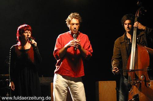 Streckenweise mit seinem Kontrabass verwachsen scheint Arnulf Lindner. An den Saiten begeistert Max Lässer , der sämtliche verfügbaren Saiteninstrumente bestens beherrscht. Bernd Bechtloff an Schlagzeug und Schlagwerken erstaunt durch immer neue Alternativ-Instrumente, angefangen bei der Keksdose, über die Kuhglocken bis hin zu diversen Tonkrügen.