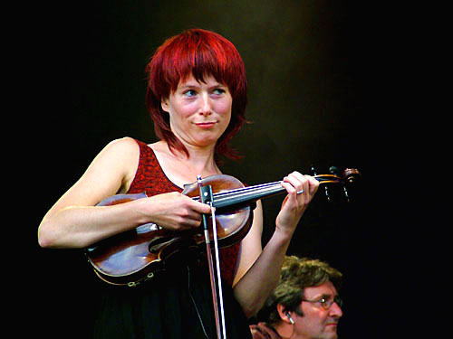 angetan mit Alternativdirndl spielt sie abwechselnd Geige, Flöte,