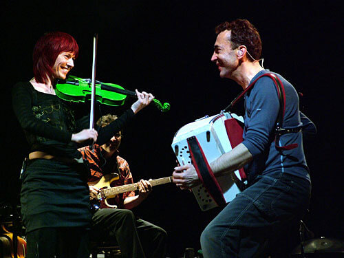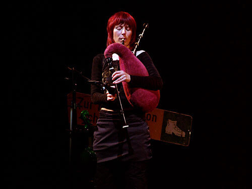Heimat? Das ist da, wo ich mich einbringe, sagt Hubert von Goisern. Da, wo ich mich raushalte, nicht. Sie haben sich drei Stunden lang eingebracht: Max Lässer mit den Gitarren, Arnulf Lindner am Bass, Bernd Bechtloff mit dem Schlagwerk. Und Monika Drasch, der Pumuckl vom Bayerisch-Diatonischen Jodelwahnsinn, mit ihrer giftgrünen Geige, die mit ihren Jodel-Künsten dem Hubert in nichts nachsteht und geschmeidig zwischendurch einsetzt.