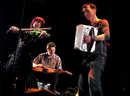 einer Ziehharmonika. Dann geht es los, und es wird gejodelt, eine Slideguitar