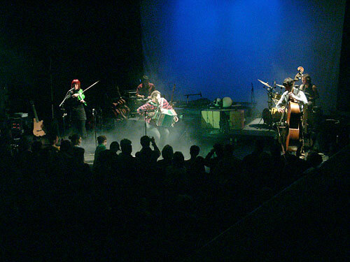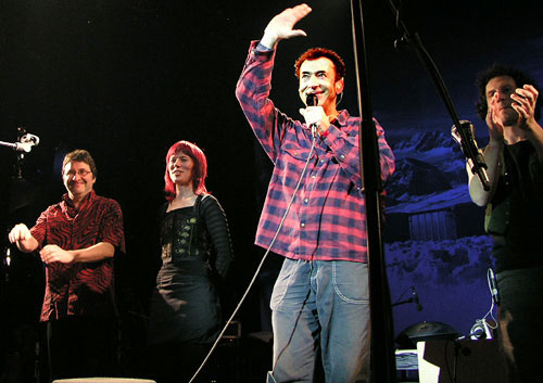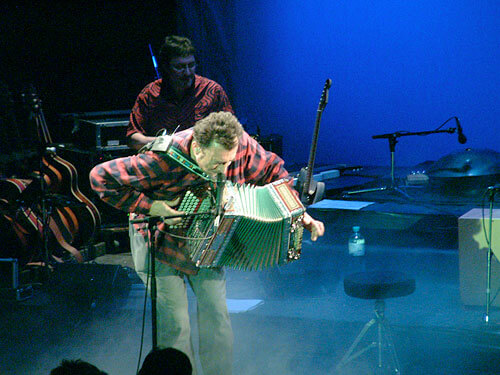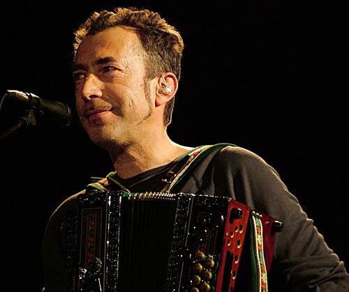 Von Goisern und seine vierköpfige Band präsentierten den Zuhörern die gelungene Verbindung von Elementen der Volksmusik sowie des Rock und Pop. Die unterschiedlichsten Instrumente kamen dabei zum Einsatz: Geige, Schlagzeug, Kontrabass, Akkustik- und Elektrogitarre, ja selbst ein Dudelsack fehlte nicht. Eine Keksdose wurde kurzerhand zum Tamburin umfunktioniert. Den Hauptbestandteil aber bildeten von Goiserns unabkömmliches Akkordeon und seine kraftvolle, markante Stimme. Auch das Programm konnte sich sehen lassen. Die Palette von schwungvollen und melancholischen Titeln (selbst innerhalb eines Liedes wechselte schon mal die Stimmung) war reichhaltig. Dass man als Nicht-Alpenländer die Liedertexte kaum verstand, war nicht wirklich tragisch - die Musik sprach für sich, und die instrumentalen Zwischenparts waren eh das Sahnehäubchen. Ebenso die diversen Jodeleinlagen, die von Goisern - wie überhaupt alles - mit ganzem Körpereinsatz brachte und dabei seine Kopfstimme herausforderte, um anschließend noch ein Solo mit Trompete hinzulegen - einfach klasse! Ebenso beeindruckend, wie er beim Titel Ausseer Schottische als Mundharmonika-Virtuose fungierte und das Instrument während des Titels zweimal wechselte, ohne sein Spielen zu unterbrechen. Bei A Griesknödl und a Leberknödl, die sich so gar nicht lieb hatten, war die Stimmung im Saal auf dem Höhepunkt. Der Hauptakteur und seine Mitstreiter spielten mit absoluter Hingabe und führten vor Ohren, wie viel Kraft in einem Instrument steckt, wenn man es denn beherrscht. Einzig die Tatsache, dass sich einzelne Titel zu sehr im Arrangement ähnelten, fiel etwas negativ auf.