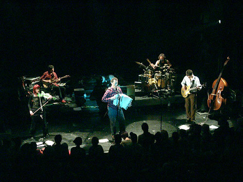 Wie er das alles tut und mit ihm seine vierköpfige Band, ist hinreißend und genügt höchsten Ansprüchen. Ein Alpentraum von Folk-Rock mitsamt fünf spielwütiger Multiinstrumentalisten. Von Goisern selbst bedient Ziehharmonikas in verschiedenen Größen, eine schmucker als die andere. Nicht minder virtuos spielt er Trompete und Flügelhorn, Traversflöte und Gitarre, Mundharmonika und Maultrommel.